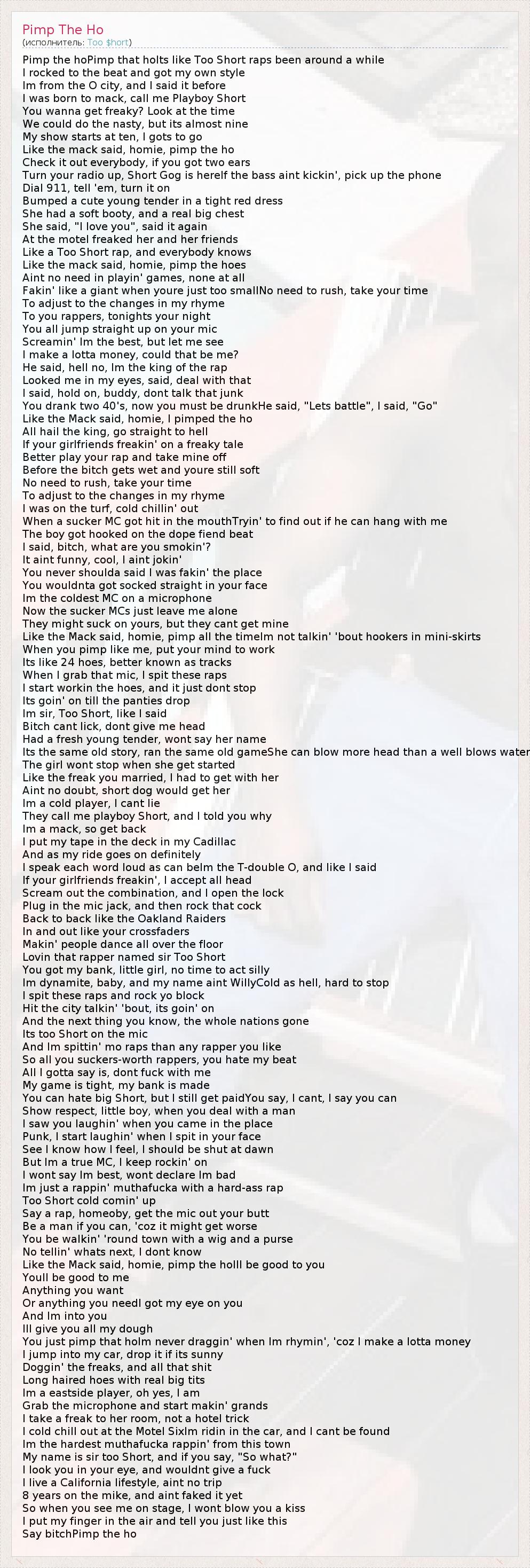 Pimp the hoPimp that hoIts like Too Short raps been around a while