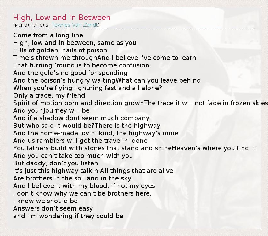 А как ты думаешь, о чем песня "High, Low and In Between" ?