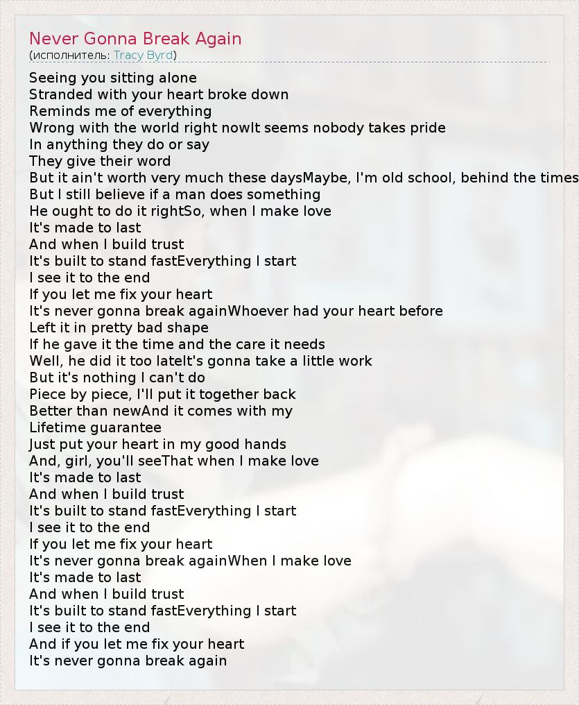 А как ты думаешь, о чем песня "Never Gonna Break Again" ?
