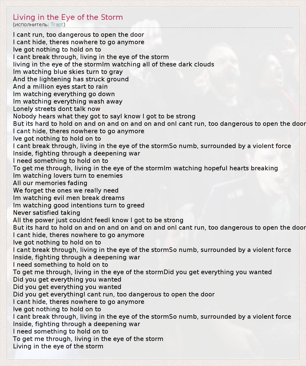 А как ты думаешь, о чем песня "Living in the Eye of the Storm" ?
