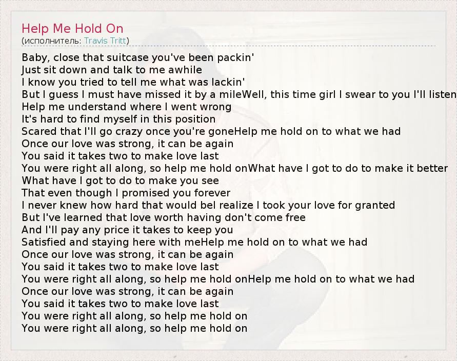 А как ты думаешь, о чем песня "Help Me Hold On" ?