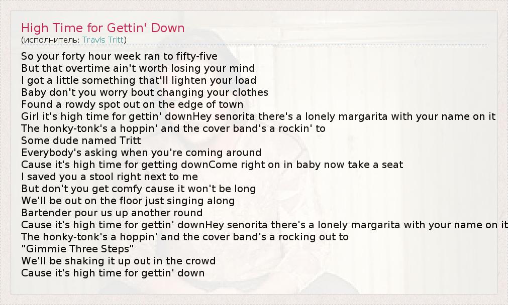 А как ты думаешь, о чем песня "High Time for Gettin' Down" ?