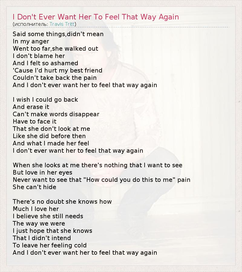 ГлавнаяИсполнителиTravis TrittI Don't Ever Want Her To Feel That Way Again