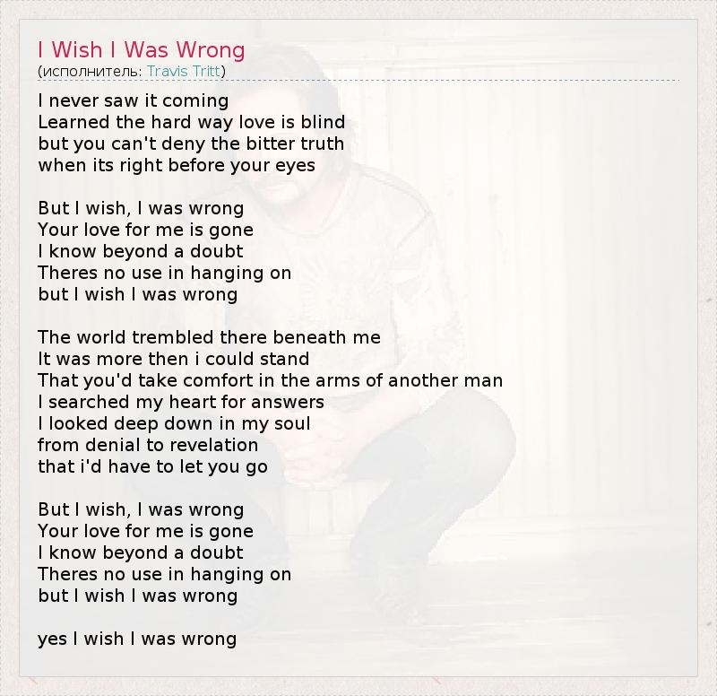 А как ты думаешь, о чем песня "I Wish I Was Wrong" ?
