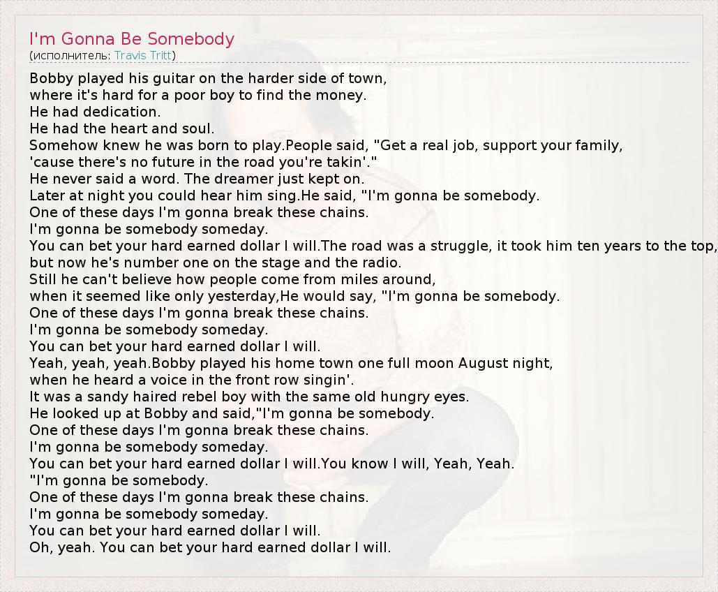 А как ты думаешь, о чем песня "I'm Gonna Be Somebody" ?