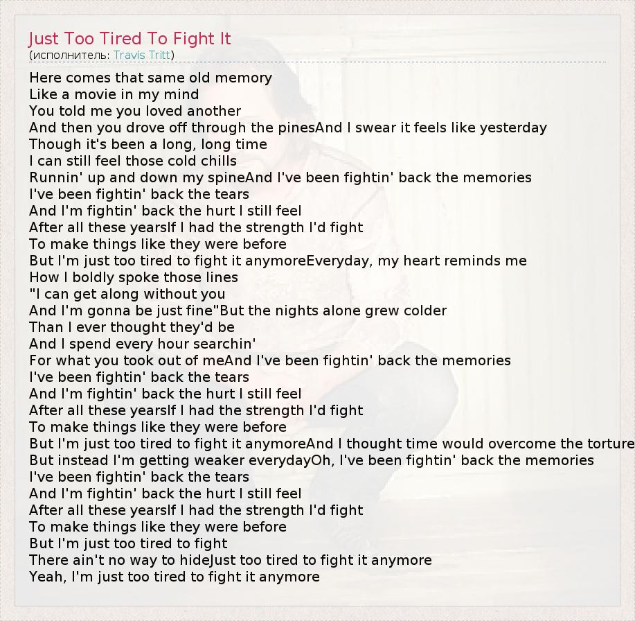 ГлавнаяИсполнителиTravis TrittJust Too Tired To Fight It