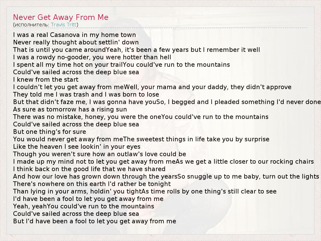 А как ты думаешь, о чем песня "Never Get Away From Me" ?