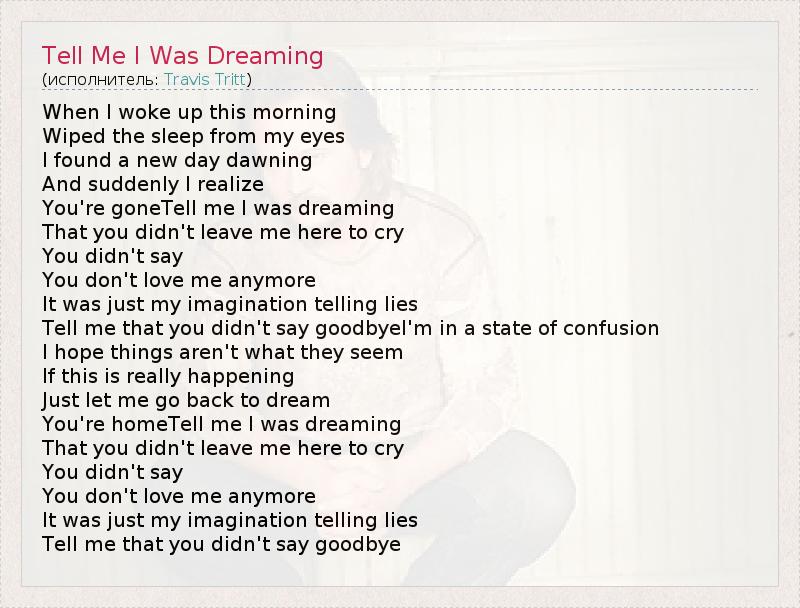 Tell Me I Was Dreaming