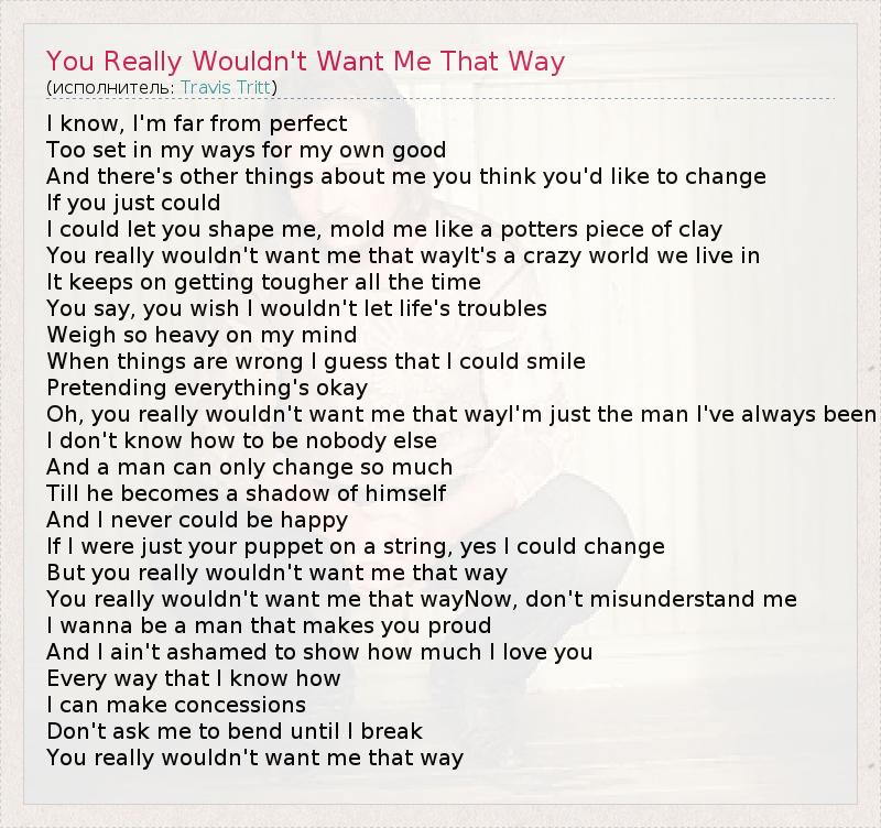 ГлавнаяИсполнителиTravis TrittYou Really Wouldn't Want Me That Way