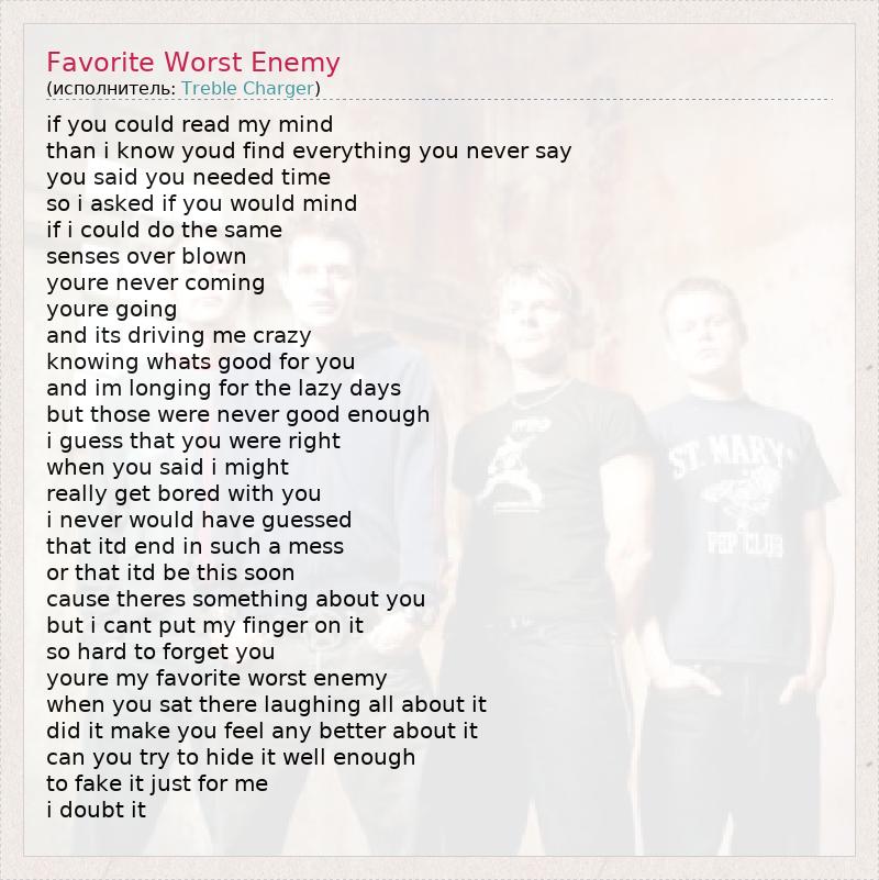 А как ты думаешь, о чем песня "Favorite Worst Enemy" ?