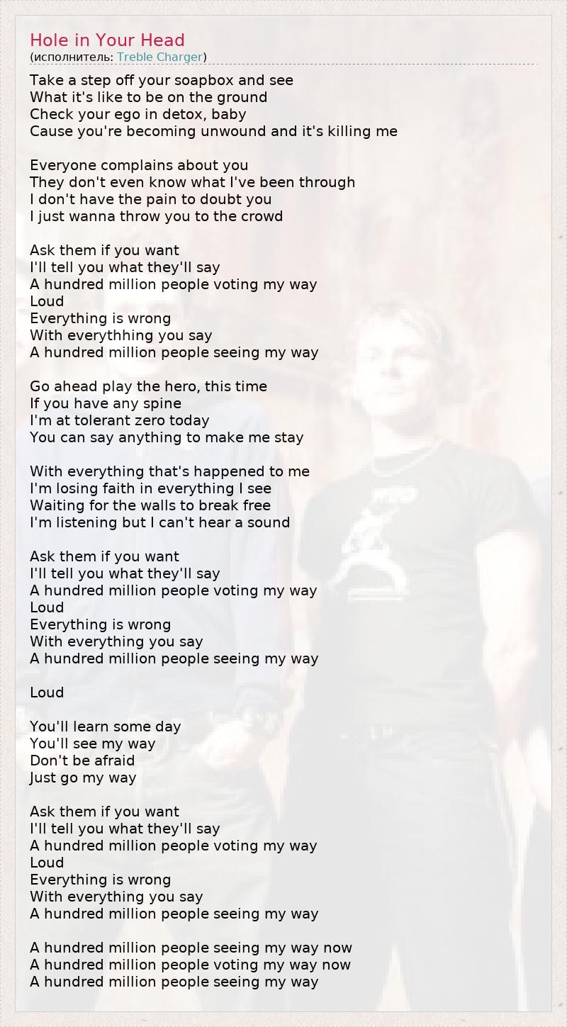 А как ты думаешь, о чем песня "Hole in Your Head" ?