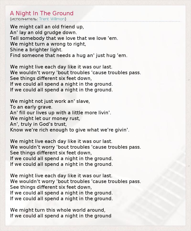 А как ты думаешь, о чем песня "A Night In The Ground" ?