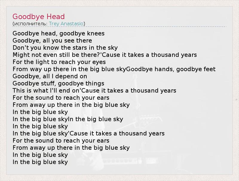 А как ты думаешь, о чем песня "Goodbye Head" ?