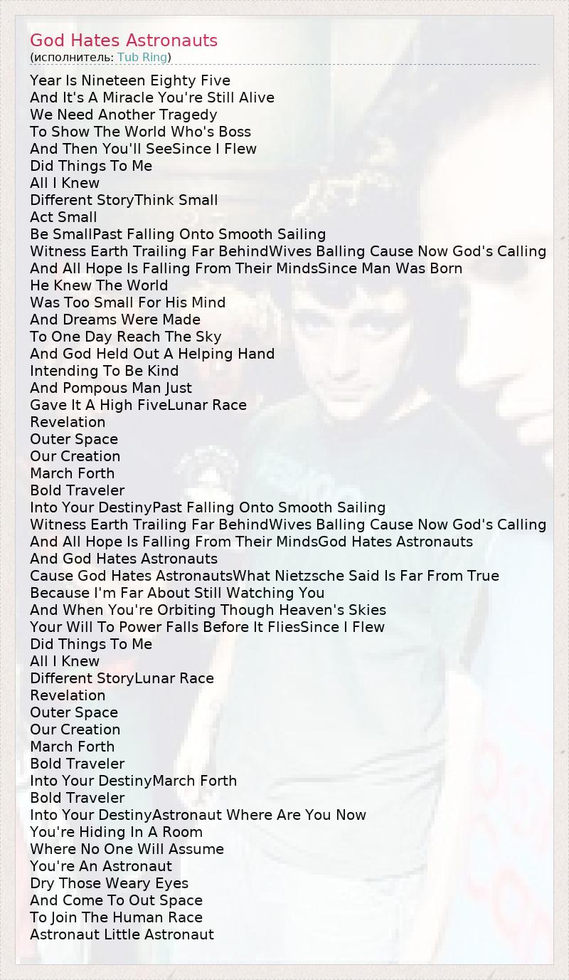 А как ты думаешь, о чем песня "God Hates Astronauts" ?