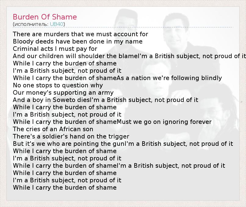 А как ты думаешь, о чем песня "Burden Of Shame" ?