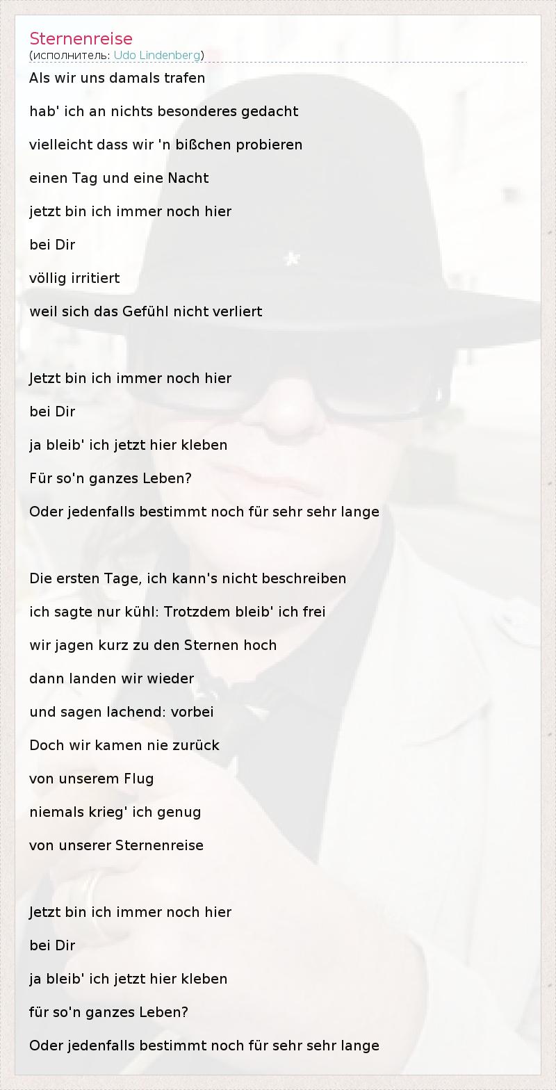А как ты думаешь, о чем песня "Sternenreise" ?