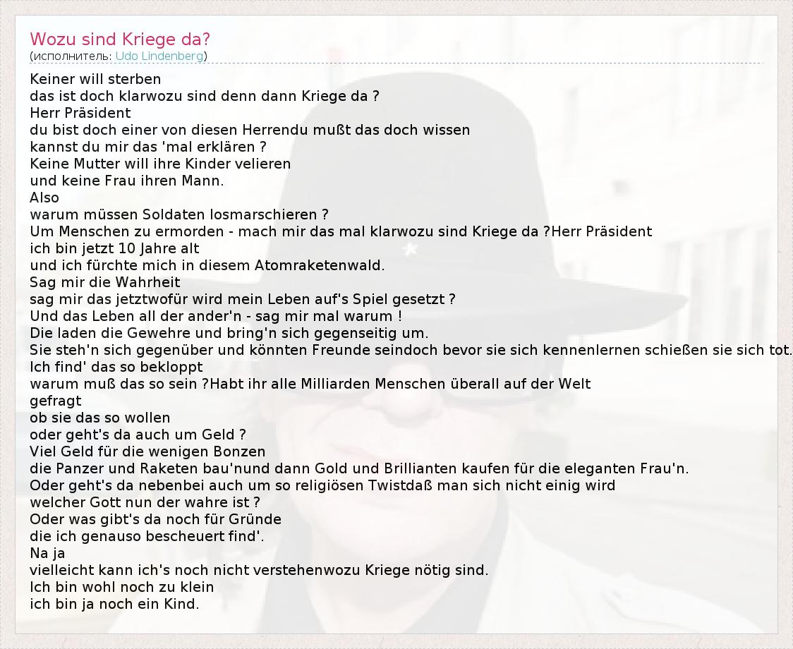 А как ты думаешь, о чем песня "Wozu sind Kriege da?" ?