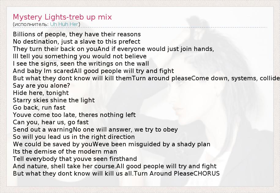 А как ты думаешь, о чем песня "Mystery Lights-treb up mix" ?
