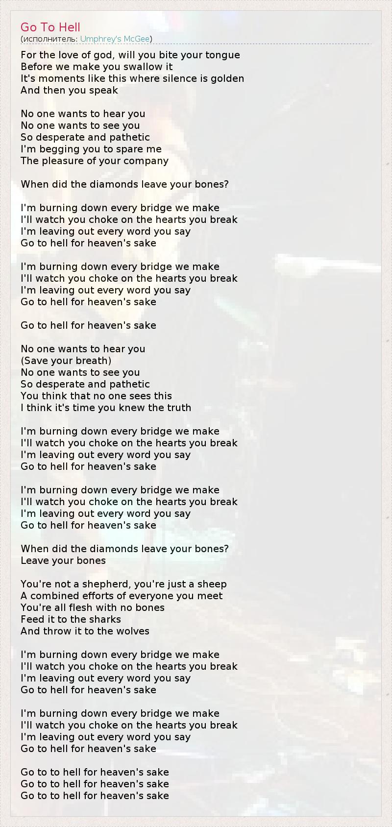 А как ты думаешь, о чем песня "Go To Hell" ?