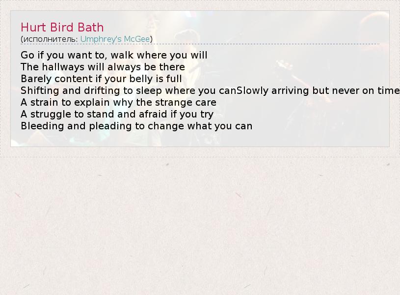 А как ты думаешь, о чем песня "Hurt Bird Bath" ?
