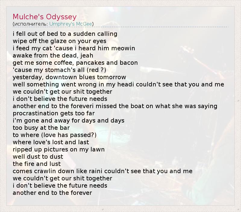 А как ты думаешь, о чем песня "Mulche's Odyssey" ?