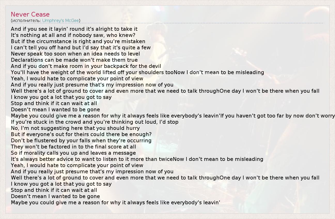 Это интересно:Umphrey's McGee is an American progressive rock band originally from South Bend, Indiana, whose music is often referred to as "progressive improvisation", or "improg". Although the band is part of the jam band scene, like Phish and the Grateful Dead (with ever-changing setlists, improvisation, two sets per night, open taping policy, etc.), they are much more influenced musically by progressive rock artists such as King Crimson, Yes, Pink Floyd, Frank Zappa, The Mahavishnu Orchestra, and early Genesis, as well as heavy metal bands such as Iron Maiden and Guns N' Roses. The band also identifies The Police, The Beatles, and Led Zeppelin as primary influences. UM experiments... продолжение