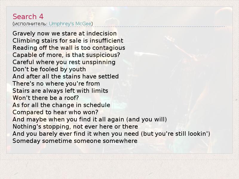 Это интересно:Umphrey's McGee is an American progressive rock band originally from South Bend, Indiana, whose music is often referred to as "progressive improvisation", or "improg". Although the band is part of the jam band scene, like Phish and the Grateful Dead (with ever-changing setlists, improvisation, two sets per night, open taping policy, etc.), they are much more influenced musically by progressive rock artists such as King Crimson, Yes, Pink Floyd, Frank Zappa, The Mahavishnu Orchestra, and early Genesis, as well as heavy metal bands such as Iron Maiden and Guns N' Roses. The band also identifies The Police, The Beatles, and Led Zeppelin as primary influences. UM experiments... продолжение