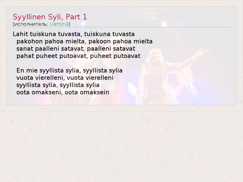 А как ты думаешь, о чем песня "Syyllinen Syli, Part 1" ?