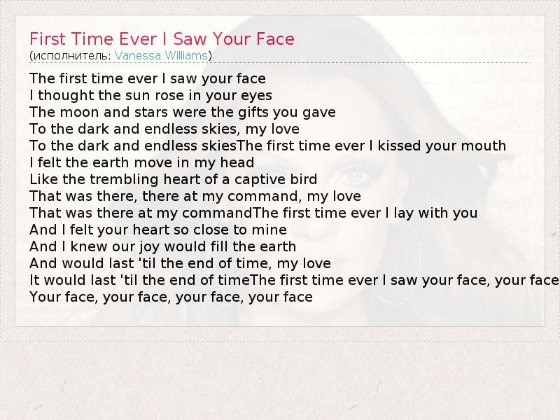 А как ты думаешь, о чем песня "First Time Ever I Saw Your Face" ?