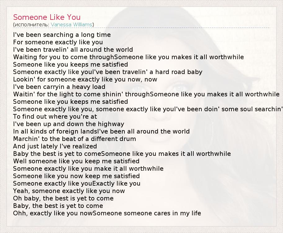Someone exactly like you, someone exactly like youI've been doin' some soul searchin'