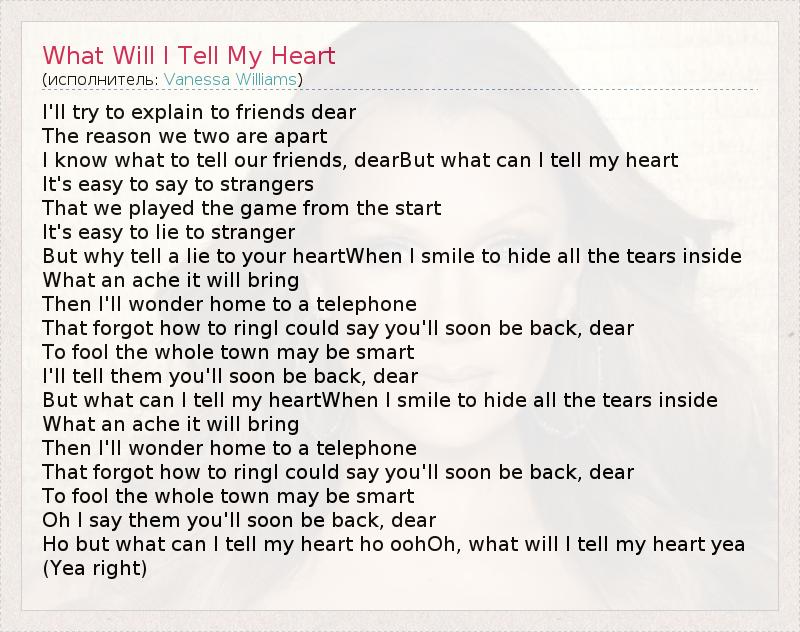 А как ты думаешь, о чем песня "What Will I Tell My Heart" ?