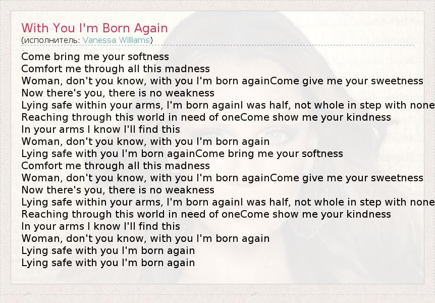 А как ты думаешь, о чем песня "With You I'm Born Again" ?