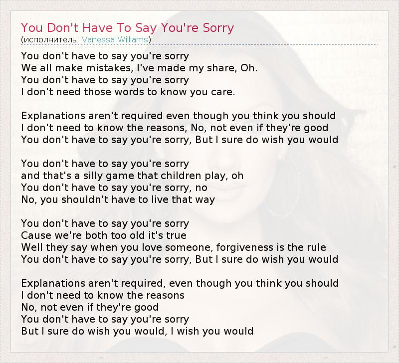 ГлавнаяИсполнителиVanessa WilliamsYou Don't Have To Say You're Sorry