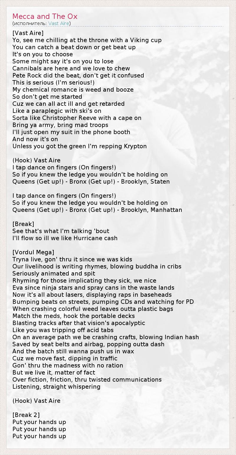 А как ты думаешь, о чем песня "Mecca and The Ox" ?