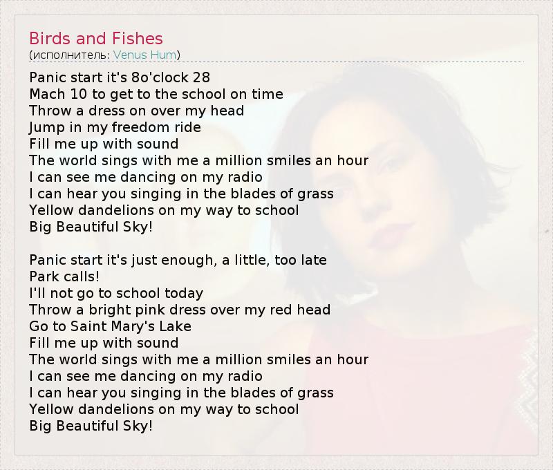 А как ты думаешь, о чем песня "Birds and Fishes" ?