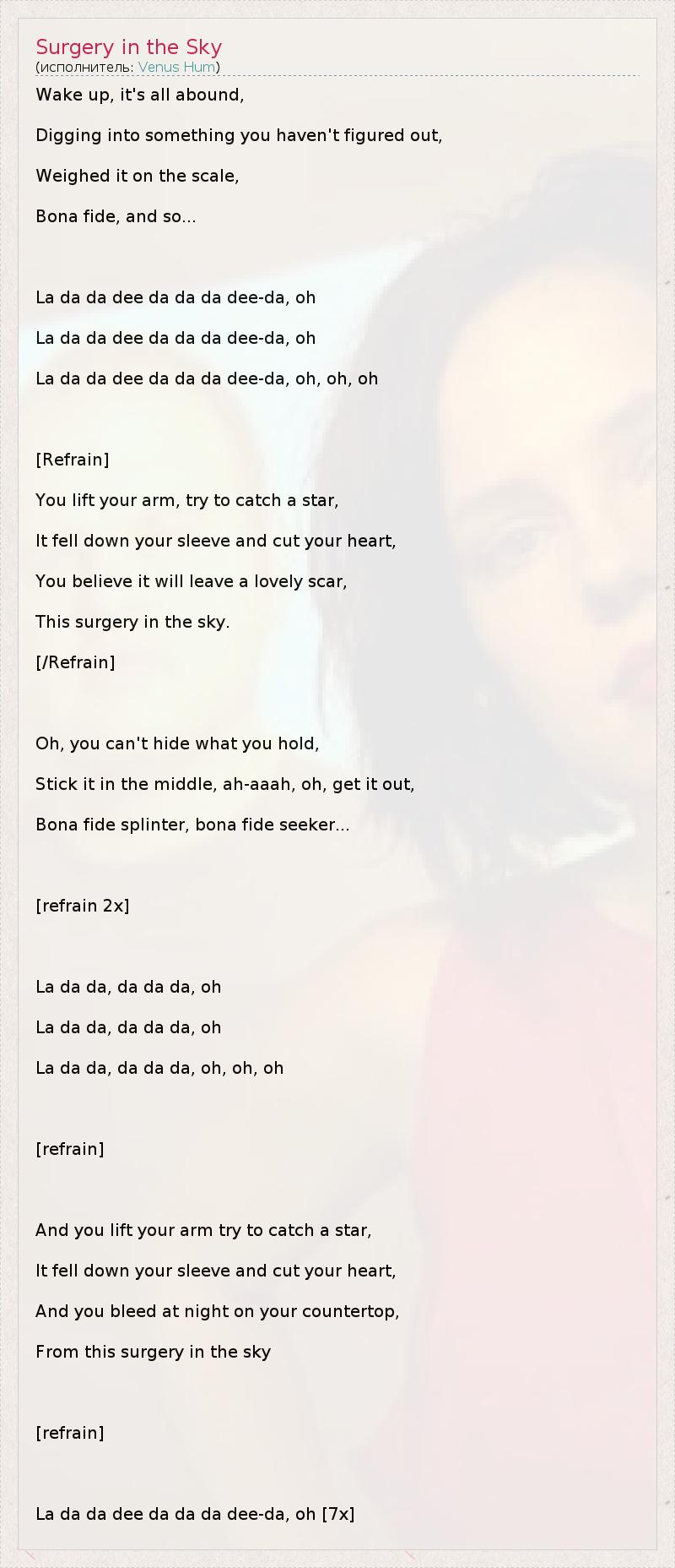 А как ты думаешь, о чем песня "Surgery in the Sky" ?