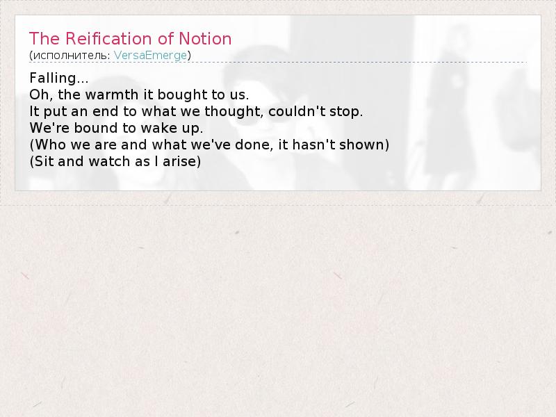 А как ты думаешь, о чем песня "The Reification of Notion" ?