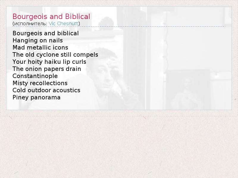 А как ты думаешь, о чем песня "Bourgeois and Biblical" ?