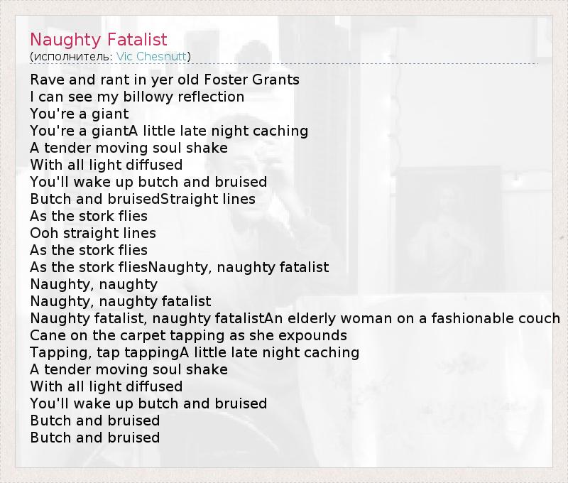 А как ты думаешь, о чем песня "Naughty Fatalist" ?