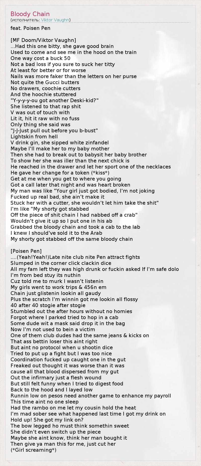 А как ты думаешь, о чем песня "Bloody Chain" ?