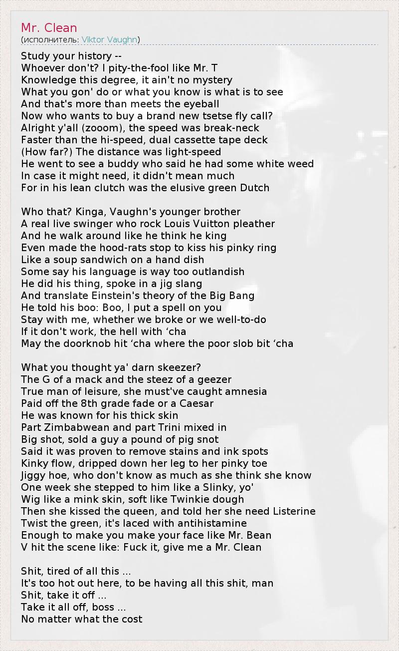 А как ты думаешь, о чем песня "Mr. Clean" ?