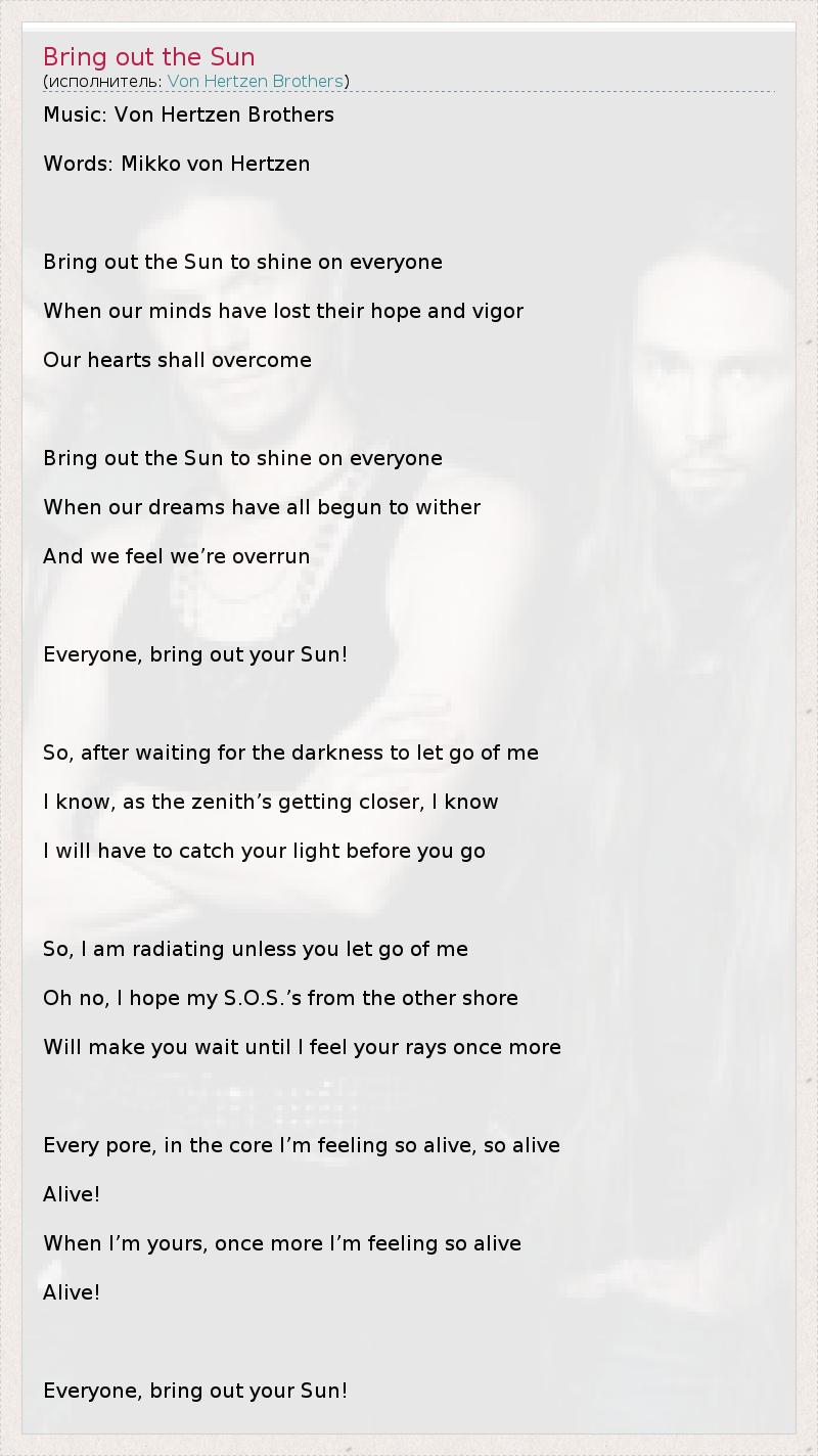 А как ты думаешь, о чем песня "Bring out the Sun" ?