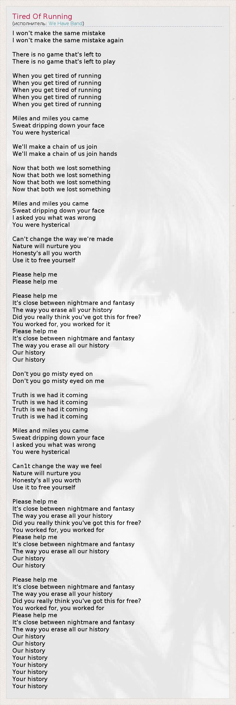 А как ты думаешь, о чем песня "Tired Of Running" ?