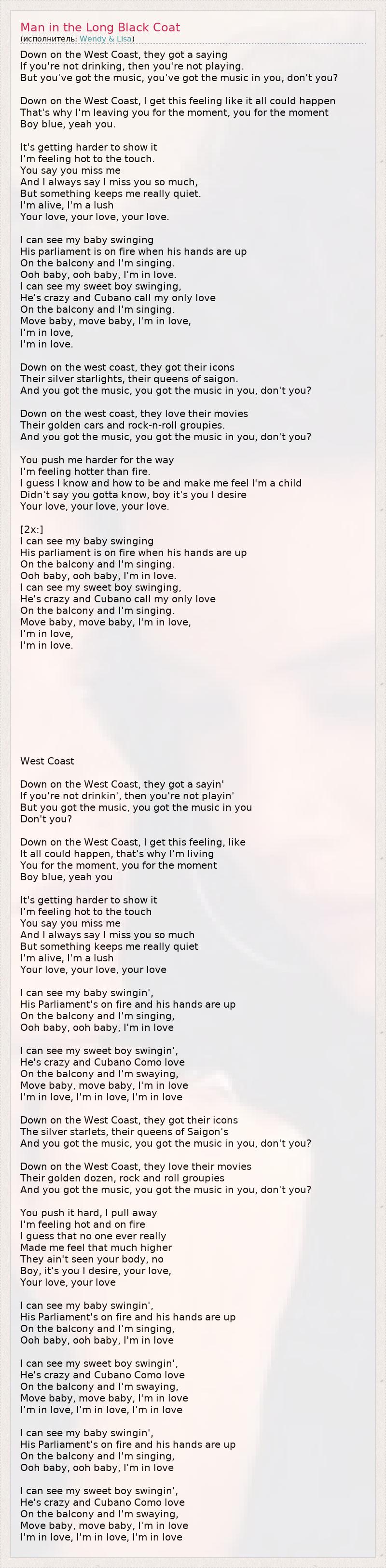 ГлавнаяИсполнителиWendy & LisaMan in the Long Black Coat