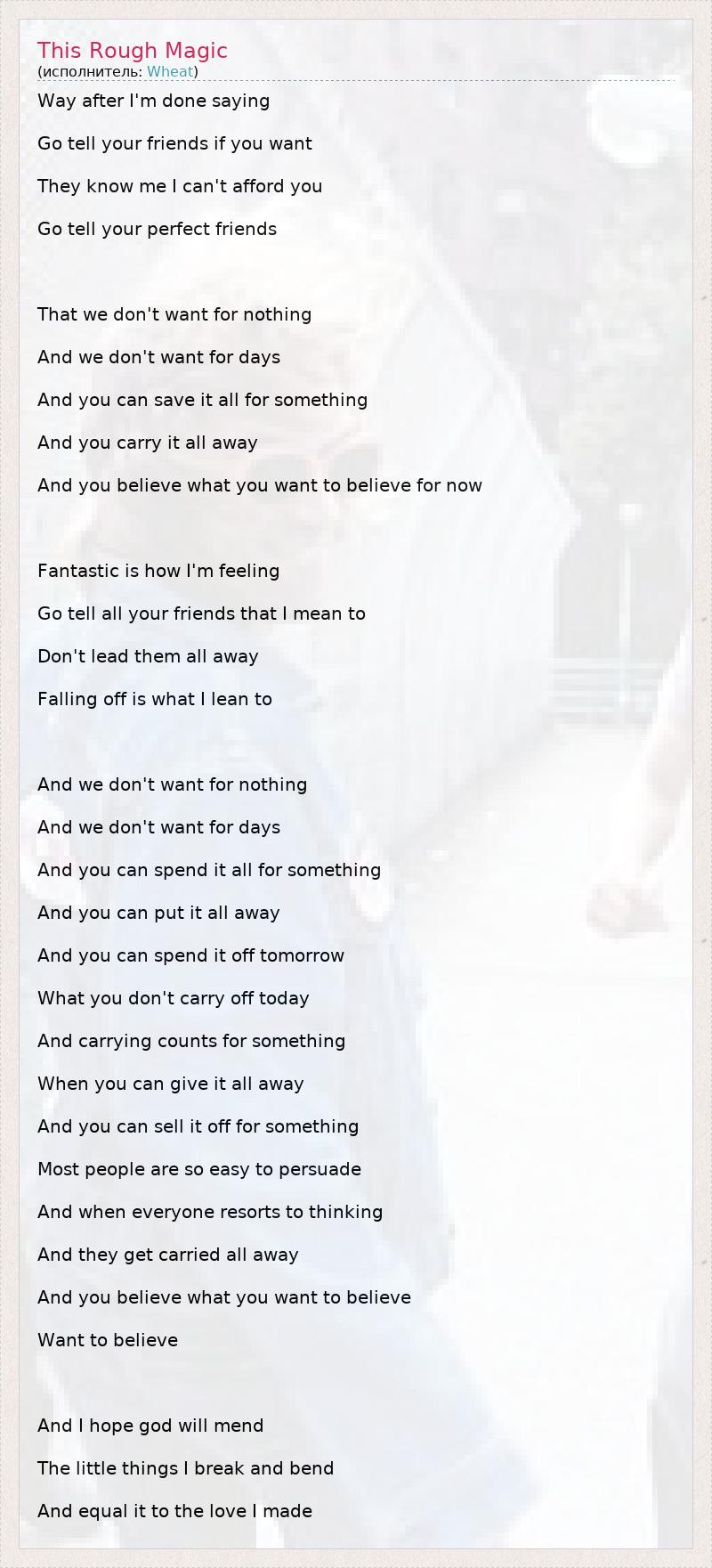 А как ты думаешь, о чем песня "This Rough Magic" ?