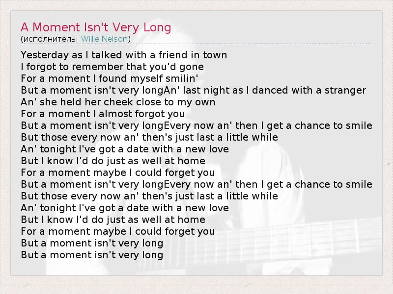 ГлавнаяИсполнителиWillie NelsonA Moment Isn't Very Long