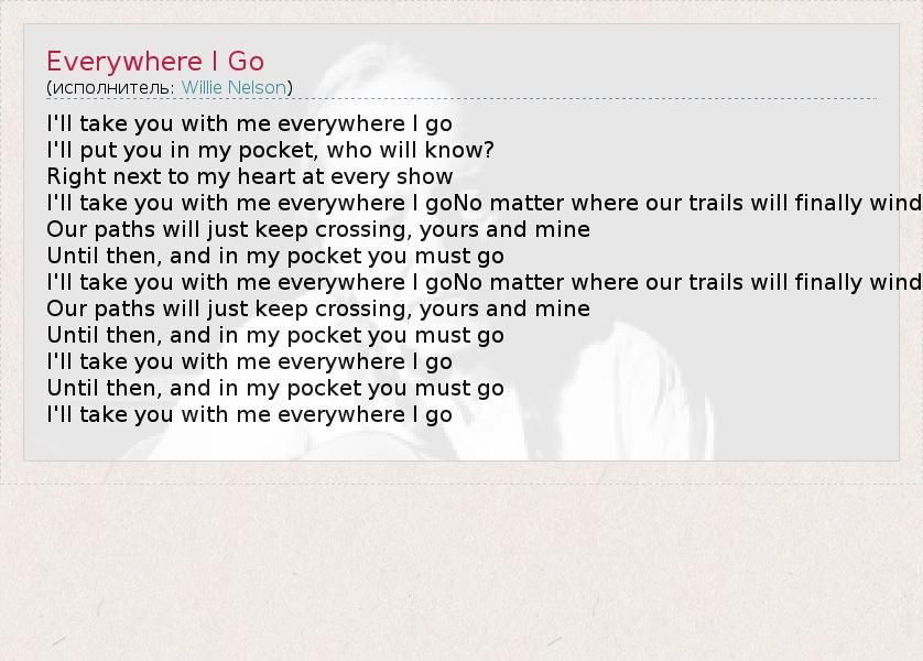 I'll take you with me everywhere I go