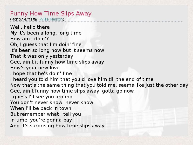 А как ты думаешь, о чем песня "Funny How Time Slips Away" ?