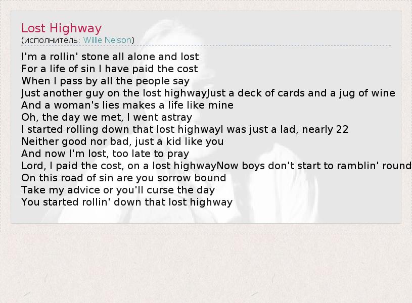 А как ты думаешь, о чем песня "Lost Highway" ?