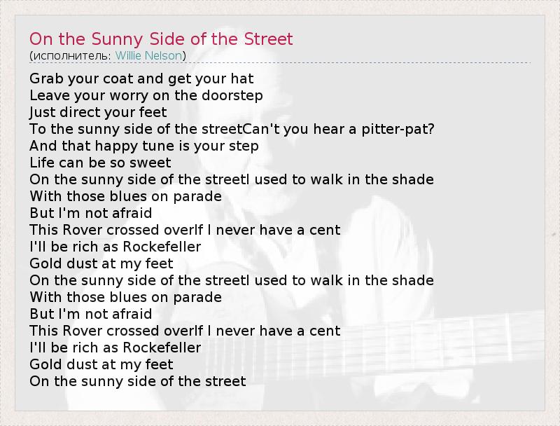 А как ты думаешь, о чем песня "On the Sunny Side of the Street" ?
